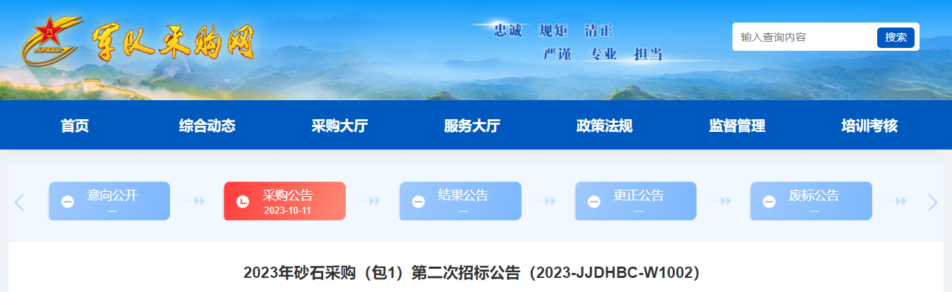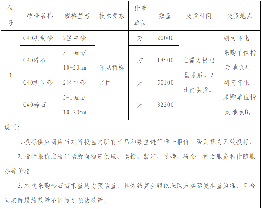 近日,軍隊(duì)采購(gòu)網(wǎng)發(fā)布砂石采購(gòu)招標(biāo)信息,根據(jù)招標(biāo)文件,招標(biāo)方將采購(gòu)機(jī)制砂、碎石共計(jì)12.08萬(wàn)方,本項(xiàng)目預(yù)算2553.56萬(wàn)元。采購(gòu)代理機(jī)構(gòu)為中科高盛咨詢(xún)集團(tuán)有限公司,競(jìng)標(biāo)人在需方提出需求后,2日內(nèi)供貨。