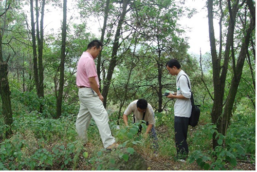 圖為黃石駐點(diǎn)工作組在大冶鐵礦廢石山復(fù)墾現(xiàn)場(chǎng)調(diào)查。