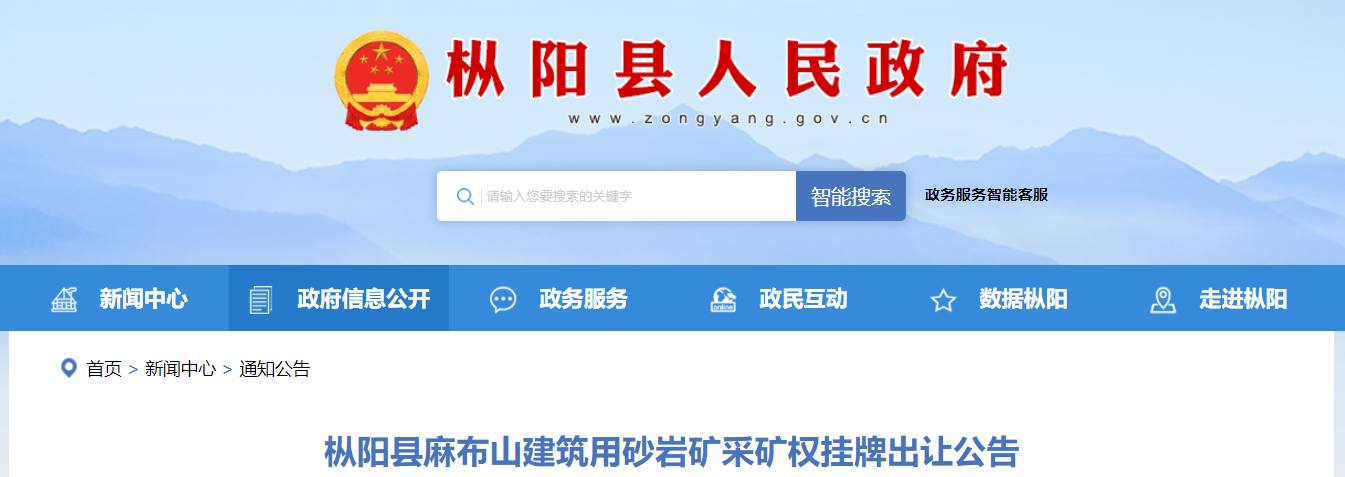樅陽(yáng)縣麻布山建筑用砂巖礦采礦權(quán)掛牌出讓公告