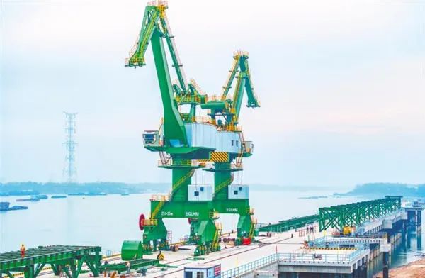 近日,湖北省黃石市砂石集并中心黃顙口港區(qū)項目建設現(xiàn)場,工人正在安裝門式起重機。該項目總投資9.06億元,新建6個5000噸級散貨泊位(其中4個砂石出口泊位、2個黃砂進口泊位),設計年吞吐量為2780萬噸。