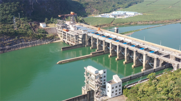 廣西左江山秀船閘擴(kuò)能工程項(xiàng)目建設(shè)現(xiàn)場航拍圖。