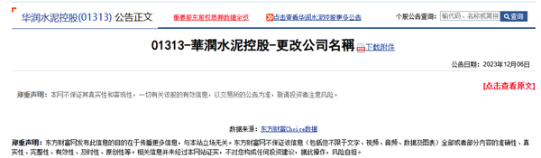 12月6日,華潤水泥發(fā)布公告稱,市場參與者請注意,華潤水泥控股有限公司的公司名稱已更改為華潤建材科技控股有限公司。因此,由2023年12月8日(星期五)起,其普通股(證券代號:1313)的證券簡稱亦將更改為“華潤建材科技”。