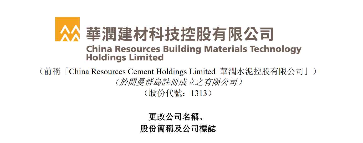 關(guān)于華潤水泥更名,其董事局認為,“水泥”已不能完全涵蓋公司業(yè)務(wù)類型。而華潤水泥骨料業(yè)務(wù)占據(jù)重要地位,是重要的盈利增長點,目前華潤水泥合計骨料年產(chǎn)能約1.6億噸。該公司于聯(lián)交所買賣的公司股份的中文股份簡稱將由“華潤水泥控股”變更為“華潤建材科技”,自2023年12月8日上午9時正起生效。公司的股份代號“1313”維持不變。