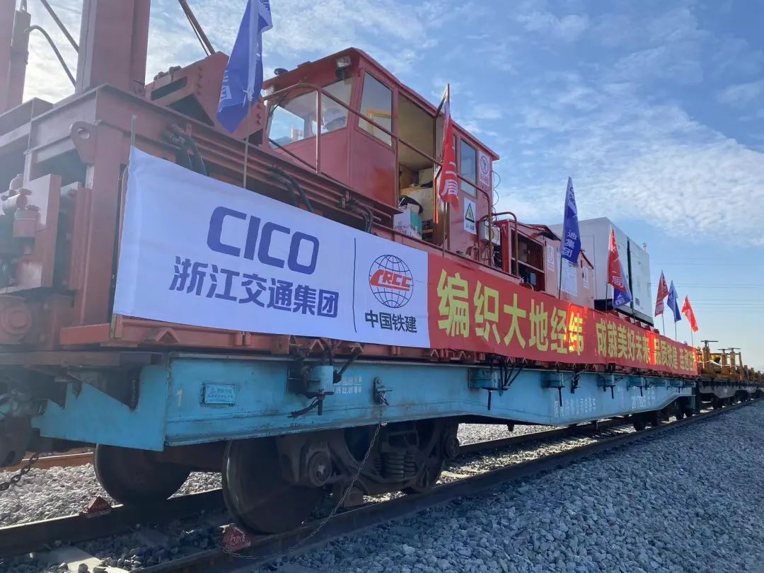 圖片杭溫鐵路二期鋪軌現(xiàn)場(chǎng)。浙江交通集團(tuán) 提供