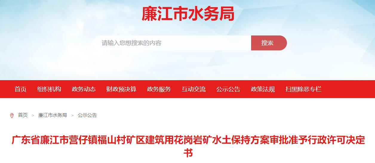 近日,廣東省廉江市營(yíng)仔鎮(zhèn)福山村礦區(qū)建筑用花崗巖礦通過(guò)水土保持方案審批準(zhǔn),據(jù)悉,該礦生產(chǎn)規(guī)模150萬(wàn)m³/a,土石方情況本項(xiàng)目挖填方總量為1587.38萬(wàn)m³,根據(jù)《廣東省廉江市營(yíng)仔鎮(zhèn)福山村礦區(qū)建筑用花崗巖礦礦產(chǎn)資源開(kāi)發(fā)利用方案(修編)》(廉江市昊原礦業(yè)有限公司,2023年7月),本項(xiàng)目估算總投資為29824.38萬(wàn)元,其中工程費(fèi)用18471.33萬(wàn)元。按照利用方案,結(jié)合實(shí)際,項(xiàng)目已于2023年7月底開(kāi)工,計(jì)劃2024年6月竣工,開(kāi)采期6.5年,閉坑治理期1年。
