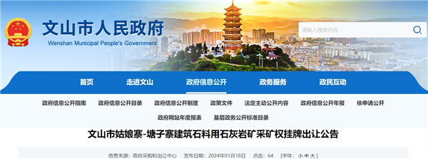 近日,云南省文山市人民政府發(fā)布文山市姑娘寨-塘子寨建筑石料用石灰?guī)r礦采礦權(quán)掛牌出讓公告。該礦資源儲量超1.3億噸,生產(chǎn)規(guī)模500萬噸/年,出讓年限22年,起始價約1.2億元。掛牌時間2024年2月23日至2024年3月8日,不接受聯(lián)合競買。