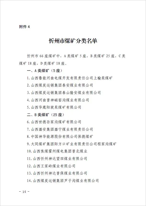 A類煤礦0座,B類煤礦22座,C類煤礦13座,D類煤礦14座。