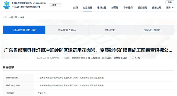 據(jù)了解,該項(xiàng)目總投資174.6億元,資源儲(chǔ)量近5.35億方,規(guī)劃生產(chǎn)規(guī)模2000萬方/年,2022年10月18日,中電建(云浮)新材料有限公司以78.5億元競(jìng)得該礦權(quán)。同時(shí),該礦也為華南地區(qū)規(guī)模第一大的單體礦山,主要產(chǎn)品可供應(yīng)粵港澳大灣區(qū)市場(chǎng)。2024年1月9日,該項(xiàng)目正式開工,預(yù)計(jì)2025年投產(chǎn)。