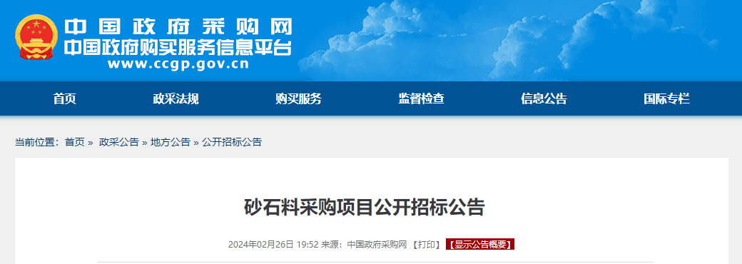 從中國政府采購網(wǎng)獲悉,砂石料采購項(xiàng)目公開招標(biāo),采購規(guī)格中砂(細(xì)度模數(shù)2.3-3.0);碎石(單粒級(jí)5-10mm);采購數(shù)量中砂2200方;碎石1600方;預(yù)算金額93萬元。意向者于2024年03月21日09點(diǎn)30分前遞交投標(biāo)文件。