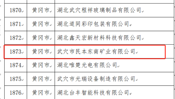 3月4日,湖北省經(jīng)濟(jì)和信息化廳公布了“湖北省第四批創(chuàng)新型中小企業(yè)名單”,武穴市民本東南礦業(yè)有限公司成功入選。