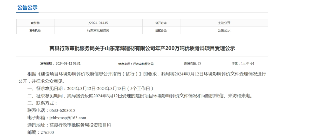 3月12日,山東常鴻建材有限公司年產(chǎn)200萬噸優(yōu)質(zhì)骨料項(xiàng)目環(huán)評(píng)受理公示。據(jù)介紹,項(xiàng)目位于山東省日照市莒縣小店鎮(zhèn)公家莊村225省道路西,項(xiàng)目總投資5860萬元,其中環(huán)保投資50萬元。項(xiàng)目占地面積6333㎡。