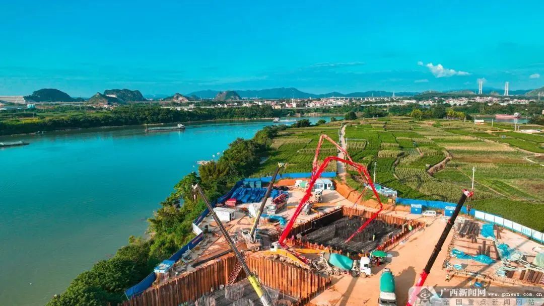 在橫欽高速郁江特大橋建設(shè)現(xiàn)場(chǎng),索塔正在飛速向上“生長(zhǎng)”,引橋墩柱如雨后春筍般破土而出。“郁江特大橋主橋樁基順利澆筑完成”“郁江南北岸承臺(tái)順利澆筑完成”……一個(gè)又一個(gè)捷報(bào)頻頻傳出。橫欽高速正在為跨越郁江——這條珠江流域西江水系最大的支流,積蓄磅礴力量。“針對(duì)郁江特大橋,我們專(zhuān)門(mén)設(shè)置了一個(gè)工區(qū),并指定專(zhuān)人全程負(fù)責(zé)該橋的技術(shù)工作。”項(xiàng)目總工程師雷閃介紹,郁江特大橋是一座主跨度580米的雙塔混合梁斜拉橋,橋梁總長(zhǎng)2200米,在世界斜拉跨徑排名第79,施工難度大、技術(shù)要求高。“要組織精兵強(qiáng)將啃下這塊‘硬骨頭’,讓黨旗深深扎根在最艱難的部位。”項(xiàng)目部黨支部在郁江特大橋設(shè)置黨員責(zé)任區(qū),充分發(fā)揮黨支部戰(zhàn)斗堡壘作用,面臨施工過(guò)程中溶洞大且高,混凝土澆筑方量較大等難題,多次組織召開(kāi)技術(shù)培訓(xùn)會(huì),邀請(qǐng)專(zhuān)家進(jìn)行指導(dǎo),現(xiàn)場(chǎng)人員嚴(yán)格把控各項(xiàng)指標(biāo),確保現(xiàn)場(chǎng)有序可控,切實(shí)推動(dòng)黨建與生產(chǎn)經(jīng)營(yíng)雙融互促,為橫欽高速公路項(xiàng)目順利建設(shè)奠定了堅(jiān)實(shí)基礎(chǔ)。截至目前,郁江特大橋樁基、系梁已全部完成,承臺(tái)設(shè)計(jì)12座已完成10座、墩柱設(shè)計(jì)10根已完成7根。