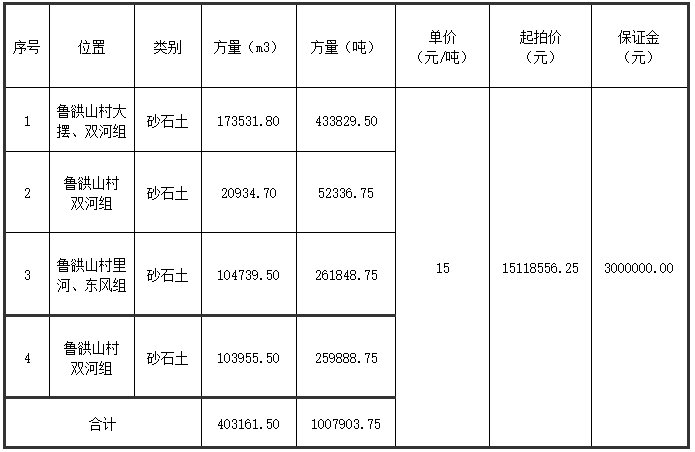 注:為滿足魯谼山水庫(kù)工程建設(shè)使用砂石土,買受人需與魯谼山水庫(kù)工程施工方提前溝通相關(guān)事宜。由于不可預(yù)見(jiàn)等因素影響,轉(zhuǎn)讓方不保證治理的砂石土實(shí)際方量和質(zhì)量,由此產(chǎn)生的問(wèn)題與轉(zhuǎn)讓方和桐城市公共資源交易中心無(wú)關(guān)。