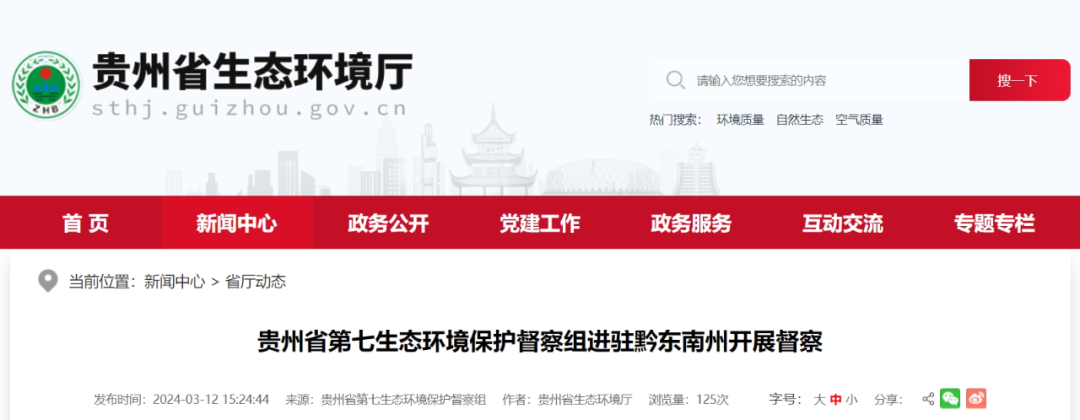 貴州省第七生態(tài)環(huán)境保護督察組(以下簡稱督察組)進駐黔東南州開展2024年貴州省生態(tài)環(huán)境保護督察工作。根據(jù)省委、省政府統(tǒng)一安排部署,貴州省第七生態(tài)環(huán)境保護督察組于2024年3月12日進駐黔東南州開展生態(tài)環(huán)境保護督察工作,進駐時間為期12天。