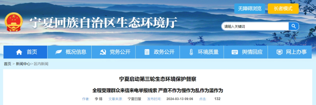 3月12日,從自治區(qū)生態(tài)環(huán)境保護督察動員部署會議上獲悉,寧夏回族自治區(qū)啟動開展第三輪生態(tài)環(huán)境保護督察。第一批次督察組3月15日前進駐石嘴山市、中衛(wèi)市、寧東能源化工基地開展督察,第二批次督察組將于6月進駐銀川市、吳忠市、固原市,每個批次督察時間不少于20天。第三輪自治區(qū)生態(tài)環(huán)境保護督察主要內(nèi)容涉及10個方面,緊盯地方黨委和政府及其有關部門生態(tài)環(huán)境保護責任落實和生態(tài)環(huán)保領域各項突出問題。
