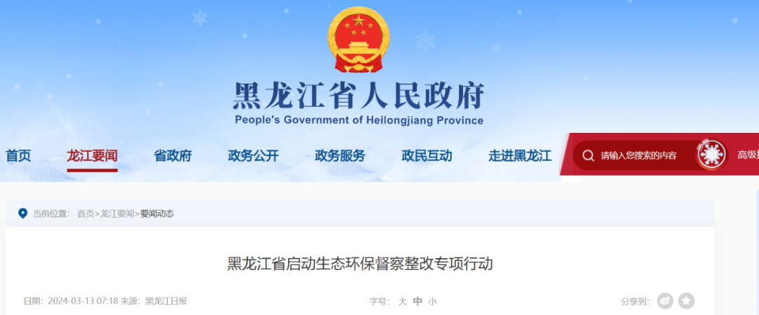 黑龍江省啟動生態(tài)環(huán)保督察整改專項行動