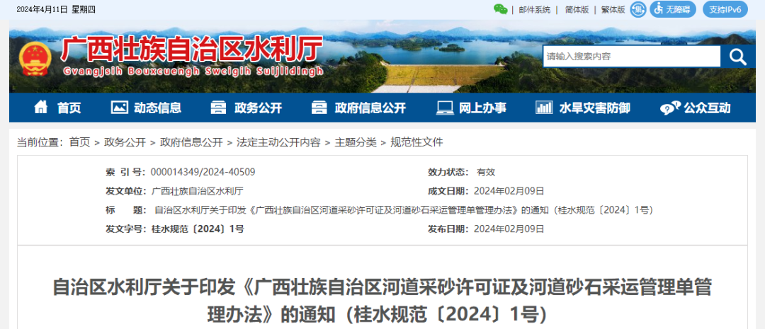 為全面貫徹落實水利部和廣西自治區(qū)關于河道采砂管理的要求,進一步規(guī)范廣西河道采砂許可證和河道砂石采運管理單的管理工作,提高涉砂活動監(jiān)管效能,廣西壯族自治區(qū)水利廳組織制定《廣西壯族自治區(qū)河道采砂許可證及河道砂石采運管理單管理辦法》。