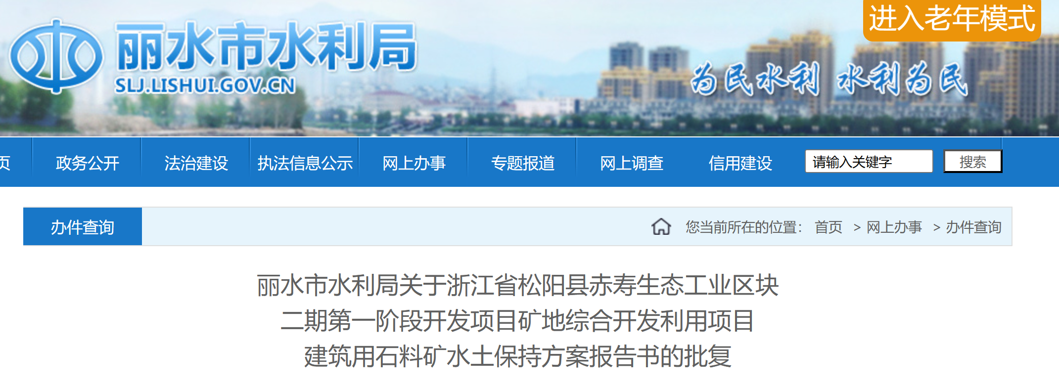 近日,浙江省麗水市水利局發(fā)布關(guān)于浙江省松陽縣赤壽生態(tài)工業(yè)區(qū)塊二期第一階段開發(fā)項目礦地綜合開發(fā)利用項目建筑用石料礦水土保持方案報告書的批復(fù)。