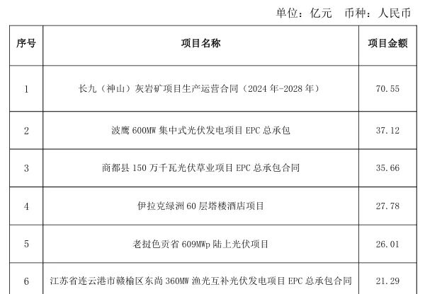 公告指出,2024年1-4月,中電建新簽合同金額在人民幣5億元以上的單個項目有33個,其中包括長九(神山)灰?guī)r礦項目生產(chǎn)運營合同(2024年-2028年)70.55億元。