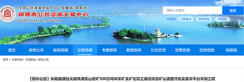 近日,安徽銅陵市公共資源交易中心發(fā)布樅陽縣螺絲尖建筑用安山巖礦980萬噸年采礦及礦石加工建設(shè)項(xiàng)目礦山道路開拓及首采平臺采剝工程招標(biāo)公告。