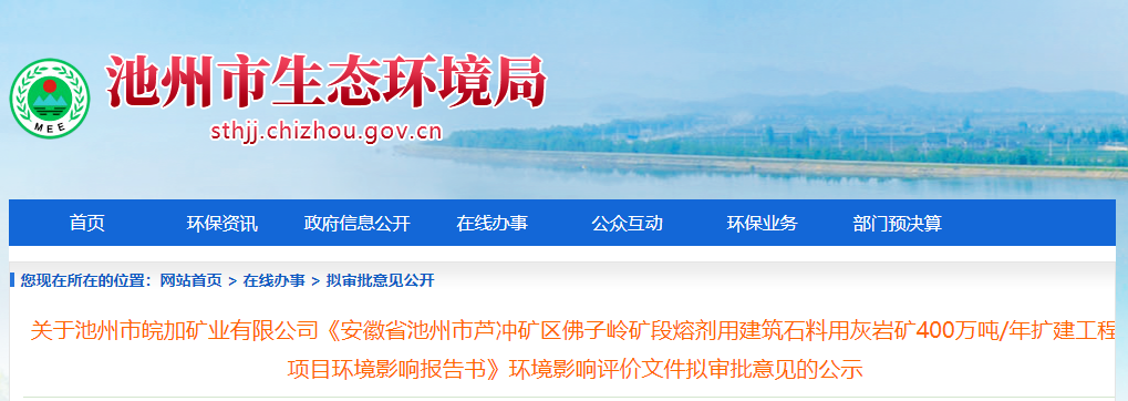 近日,安徽池州市生態(tài)環(huán)境局公示池州蘆沖礦區(qū)佛子嶺礦段熔劑用建筑石料用灰?guī)r礦400萬噸/年擴建工程項目環(huán)境影響報告。項目總投資36949.71萬元,設(shè)計利用熔劑石灰?guī)r礦和建筑石料用灰?guī)r礦資源量4265.6萬噸。
