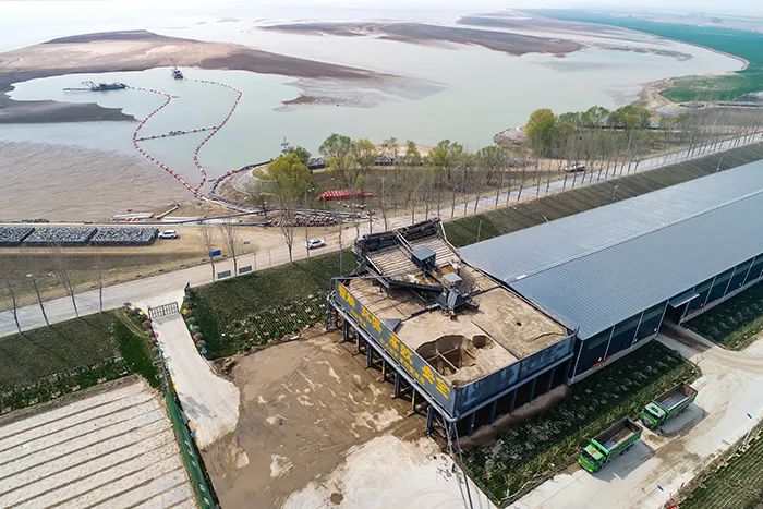 行走在河南焦作溫縣黃河之濱,美麗整潔的岸線熠熠生輝,遠(yuǎn)眺對岸,巍巍青山草木蔥蘢;河面上,水鳥翩翩起舞,采砂船有序作業(yè);采砂場內(nèi),按照砂石生產(chǎn)流程建設(shè)的各功能區(qū)分工明確,干砂脫水、智能裝車秩序井然,砂石生產(chǎn)實(shí)現(xiàn)流水化作業(yè)、一條龍服務(wù),車輛從進(jìn)場到裝砂出場僅需8分鐘,日均產(chǎn)砂1.8萬噸,生態(tài)型封閉式砂場解決了砂石生產(chǎn)、堆放、裝載過程中的危害生態(tài)環(huán)境問題,呈現(xiàn)出一幅以砂興業(yè)、人與自然和諧共生的圖景。