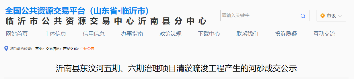 50元/噸!山東沂南100萬(wàn)噸河砂5000萬(wàn)成交