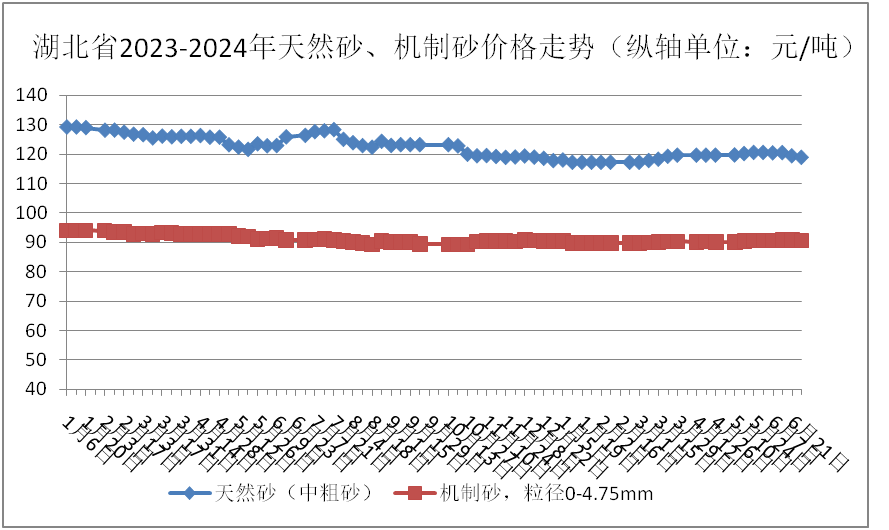 天然砂價(jià)格下跌、機(jī)制砂價(jià)格微漲