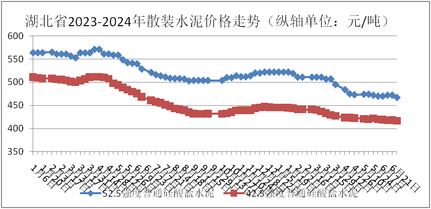 監(jiān)測(cè)數(shù)據(jù)顯示:6月份,42.5強(qiáng)度普通硅酸鹽水泥、42.5強(qiáng)度礦渣硅酸鹽水泥、52.5強(qiáng)度普通硅酸鹽水泥全省平均價(jià)格分別為:417.85元/噸、388.04元/噸、472.25元/噸,環(huán)比分別下跌:0.64%、1.63%、0.48%;同比分別下跌:11.30%、15.39%、11.74%。具體價(jià)格走勢(shì)情況如下圖:
