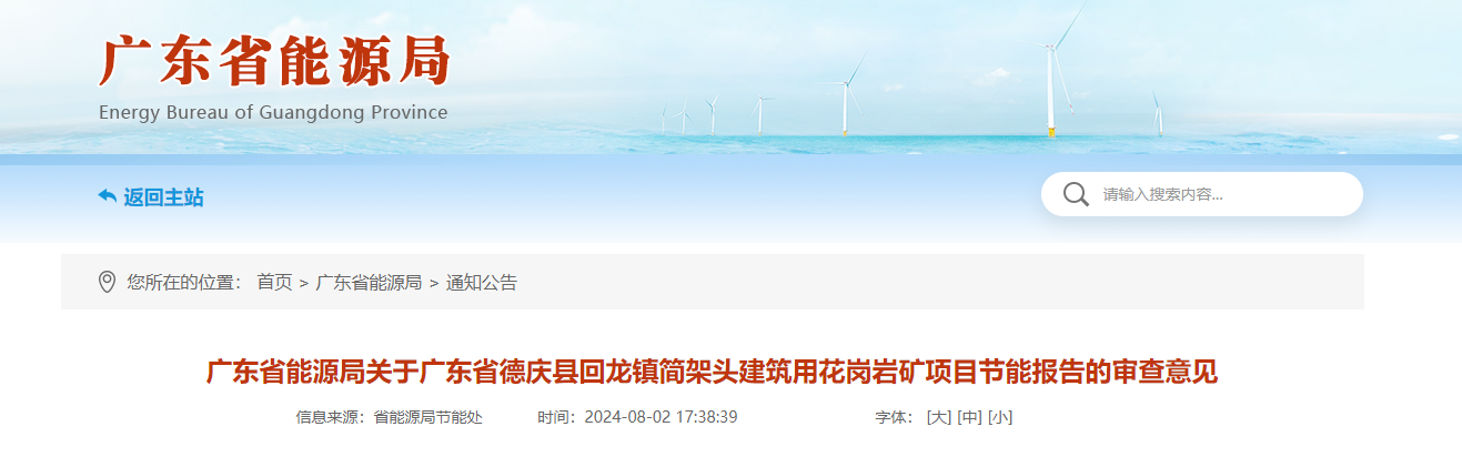 近日,廣東省能源局審批通過中能建廣東省肇慶市德慶縣回龍鎮(zhèn)簡架頭建筑用花崗巖礦項(xiàng)目節(jié)能報(bào)告。