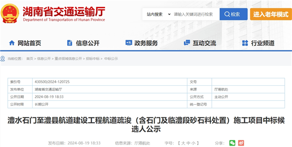 近日,湖南省常德市澧水石門至澧縣航道建設(shè)工程航道疏浚(含石門及臨澧段砂石料處置)施工項(xiàng)目公布中標(biāo)候選人。長(zhǎng)江重慶航道工程局(聯(lián)合體牽頭方)、安徽貿(mào)梭新型建材有限公司(聯(lián)合體成員單位)以施工部分投標(biāo)報(bào)價(jià)超2.34億元、疏浚砂石料處置單價(jià)(含稅)40.99元/方的價(jià)格成為第一候選人。