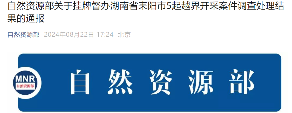 2023年4月,自然資源部公開掛牌督辦湖南省耒陽市5起越界開采案件,5起均為砂石礦越界開采案件。