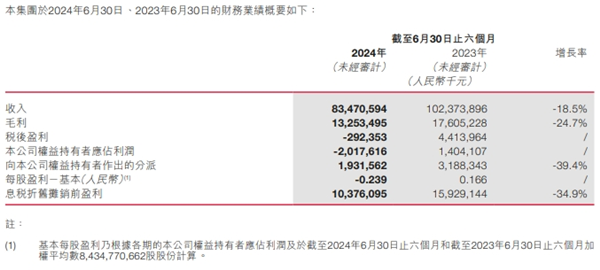 8月27日,中建材發(fā)布2024中期報告。報告期內(nèi),中建材實現(xiàn)營收834.71億元,同比去年下降18.5%;未經(jīng)審核權(quán)益持有者應(yīng)占虧損約為20.18億元,每股基本虧損為0.239元。