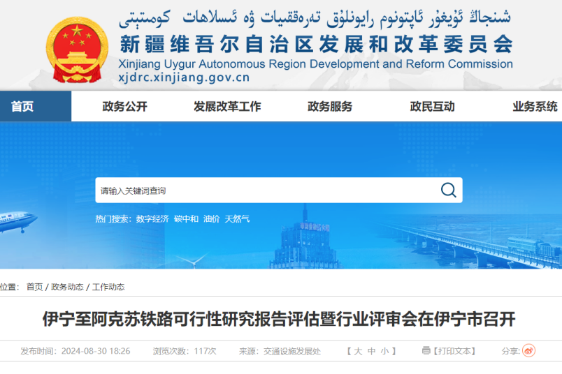 據(jù)新疆維吾爾族自治區(qū)發(fā)改委官網(wǎng)消息,8月26日至30日,受?chē)?guó)家發(fā)展改革委委托,中鐵二院工程集團(tuán)有限責(zé)任公司聯(lián)合國(guó)家鐵路局規(guī)劃與標(biāo)準(zhǔn)研究院,組織專(zhuān)家對(duì)伊寧至阿克蘇鐵路沿線進(jìn)行現(xiàn)場(chǎng)踏勘,并在伊寧市召開(kāi)可研報(bào)告評(píng)估暨行業(yè)評(píng)審。
