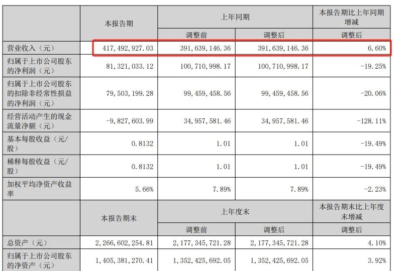 據(jù)浙礦重工半年報數(shù)據(jù)顯示,2024年1-6月營業(yè)總收入4.17億元,較去年同期增長6.6%,凈利潤為8132.1萬,較去年同期下滑19.25%,每股收益0.8132元,凈資產(chǎn)收益率為5.66%,每股經(jīng)營現(xiàn)金流量為-0.0983元,銷售毛利率為35.43%。