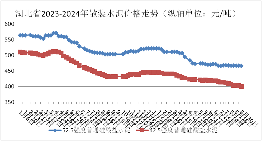 監(jiān)測數(shù)據(jù)顯示:8月份,42.5強(qiáng)度普通硅酸鹽水泥、42.5強(qiáng)度礦渣硅酸鹽水泥、52.5強(qiáng)度普通硅酸鹽水泥全省平均價格分別為:403.70元/噸、373.95元/噸、466.80元/噸,環(huán)比分別下跌:2.11%、1.87%、0.15%;同比分別下跌:8.25%、14.48%、7.84%。具體價格走勢情況如下圖: