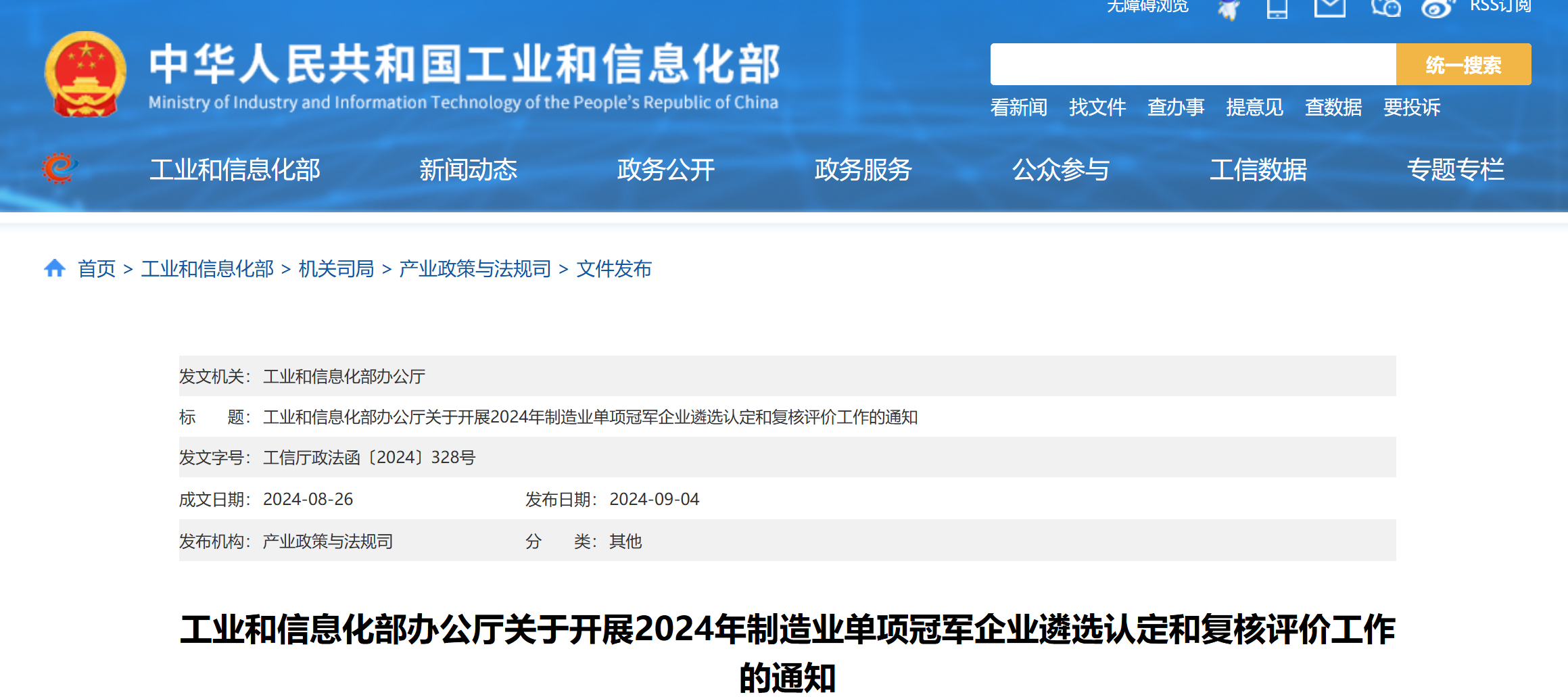 近日,工業(yè)和信息化部辦公廳發(fā)布關(guān)于開(kāi)展2024年制造業(yè)單項(xiàng)冠軍企業(yè)遴選認(rèn)定和復(fù)核評(píng)價(jià)工作的通知。2021年認(rèn)定的第六批及通過(guò)復(fù)核的第三批單項(xiàng)冠軍示范企業(yè)及單項(xiàng)冠軍產(chǎn)品企業(yè),須參加本次復(fù)核評(píng)價(jià)工作。