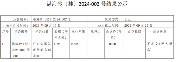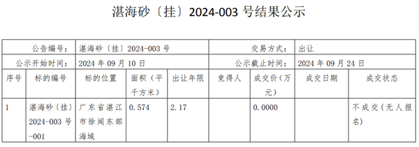 9月10日,廣東湛江市公共資源交易中心發(fā)布湛江市徐聞東部海域CB21-01區(qū)塊、JH21-03區(qū)塊、JH21-04區(qū)塊、JH21-05區(qū)塊海砂競(jìng)拍結(jié)果,皆因無(wú)人報(bào)名流拍。