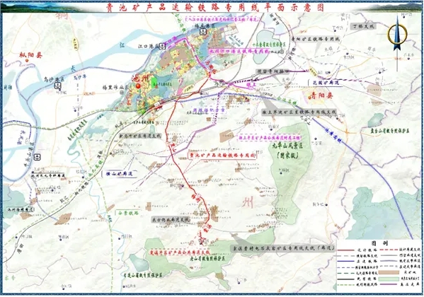 貴池礦產(chǎn)品運(yùn)輸鐵路專用線包括正線與棠溪片區(qū)礦產(chǎn)品公共廊道支線,線路正線全長(zhǎng)約44.216千米,廊道支線全長(zhǎng)約4.33千米,新設(shè)車站4座,分別為馬衙北站、里山站、梅街站、棠溪站;配套建設(shè)鐵路專用線相關(guān)的配套工程。