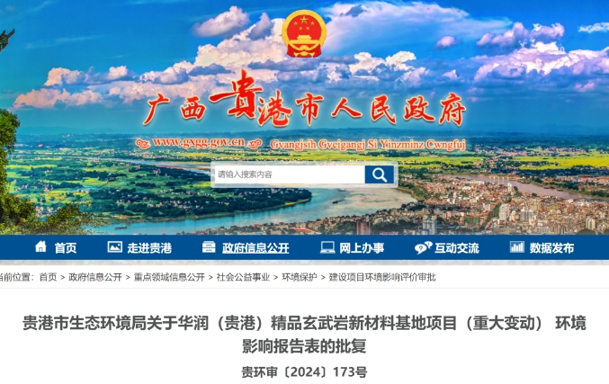《華潤(貴港)精品玄武巖新材料基地項目(重大變動)環(huán)境影響報告表(報批稿)》(以下簡稱《報告表》)及相關材料收悉。經研究,批復如下: