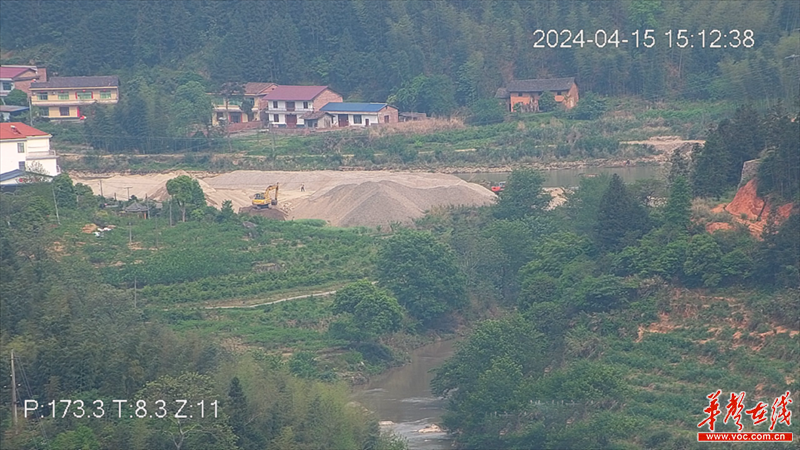 (“鐵塔哨兵”發(fā)現(xiàn)沔水某河段附近違規(guī)設(shè)置砂石加工廠。省自然資源廳供圖)