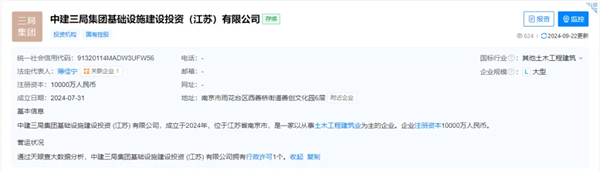 2、注冊(cè)信息:該公司成立于2024年07月31日,注冊(cè)資本為1億元,法定代表人為薄佳寧。中建三局100%直接持股,這表明中建三局對(duì)該公司有完全的控制力。