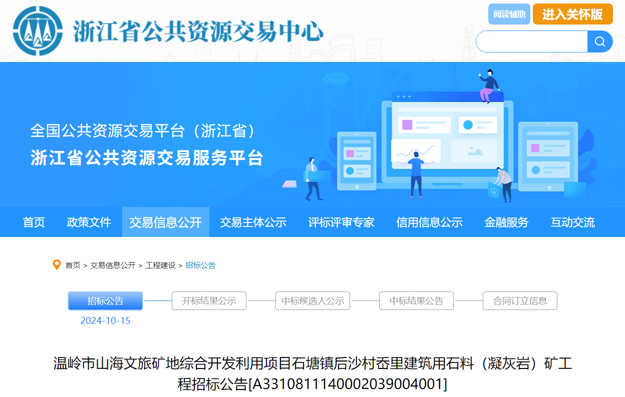 據(jù)浙江省公告資源交易中心獲悉,浙江溫嶺市山海文旅礦地綜合開發(fā)利用項目石塘鎮(zhèn)后沙村岙里建筑用石料(凝灰?guī)r)礦工程砂石骨料生產(chǎn)線主機設(shè)備(旋回破碎機)采購招標(biāo)。