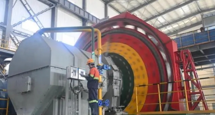 11月6日,甘肅省隴南市禮縣隴南紫金礦業(yè)有限公司內(nèi),球磨設(shè)備進(jìn)行自動(dòng)化磨礦粉碎作業(yè)。