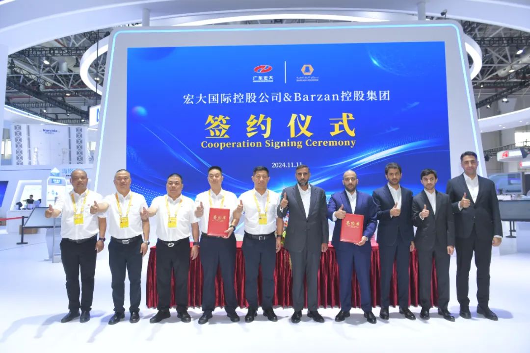 11月11日,在珠海航展廣東宏大展位,宏大爆破下屬宏大國(guó)際與卡塔爾Barzan Holdings舉行合作簽約儀式。