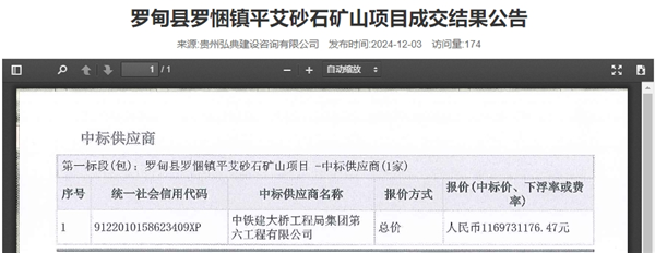 中鐵建大橋局近11.7億元中標(biāo)貴州一砂石項(xiàng)目施工總承包