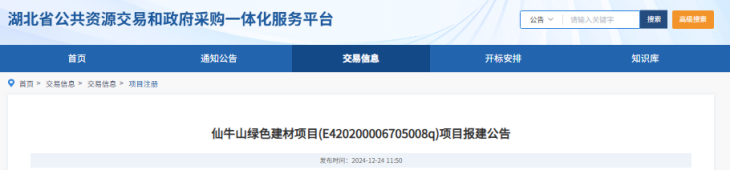 日前,湖北省公共資源交易和政府采購一體化服務(wù)平臺發(fā)布仙牛山綠色建材項(xiàng)目報(bào)建公告。該砂石骨料生產(chǎn)線項(xiàng)目生產(chǎn)機(jī)制骨料綠色環(huán)保建材產(chǎn)品,年生產(chǎn)能力為500萬噸,礦區(qū)范圍內(nèi)估算建筑石料用白云巖礦資源量約1.09億噸。