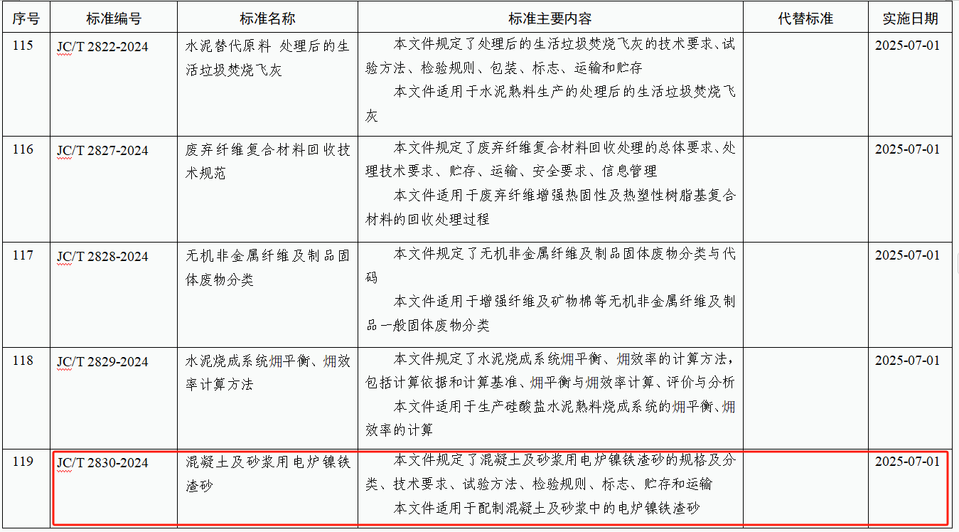 標(biāo)準(zhǔn)名稱:混凝土及砂漿用電爐鎳鐵渣砂