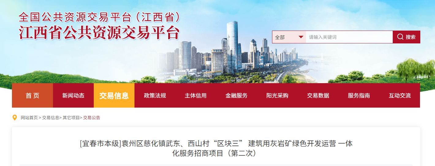 1、項目名稱:袁州區(qū)慈化鎮(zhèn)武東、西山村“區(qū)塊三”建筑用灰?guī)r礦綠色開發(fā)運營一體化服務(wù)招商項目(第二次),招商編號:2024JXWHZS-YC006-001。