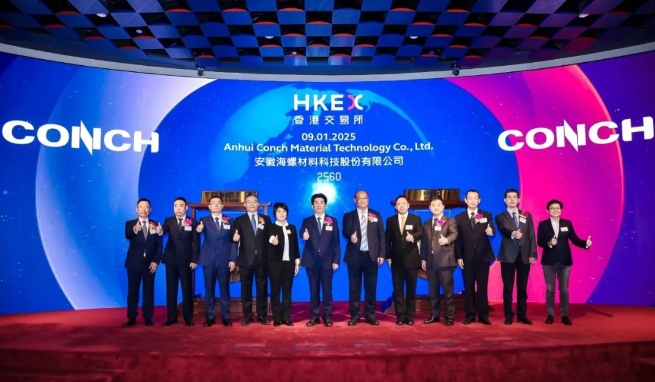 2025年1月9日,海螺材料科技上市儀式在香港聯(lián)交所舉行,安徽蕪湖市委常委/常務副市長韋秀芳、蕪湖市政府副秘書長徐禮陽、海螺集團黨委書記/董事長楊軍、海螺科創(chuàng)黨委書記/常海螺材料科技董事長丁鋒、海螺科創(chuàng)總經理周小川、海螺材料科技總經理陳烽以及蕪湖市相關部門負責人等眾多領導、嘉賓共同見證了這一時刻。